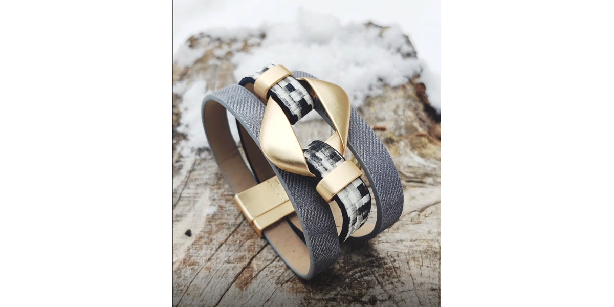 Lederarmband in matt-gold und taupe